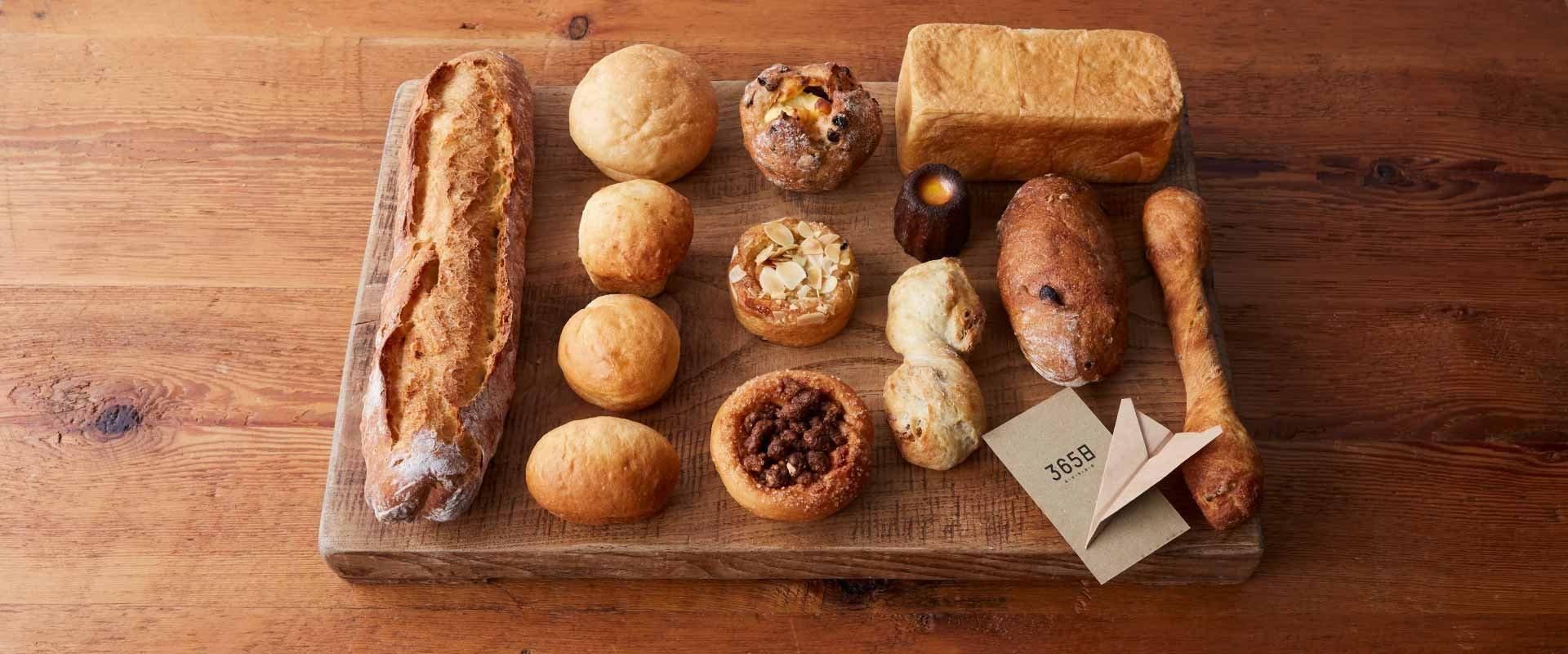 365日×食ぱん、365日×ブリオッシュ、バターロール、365日×バゲット、ノワレザン、くるみパン、ヴィーニュ×クリームチーズ、コンテ×18ヶ月、バコンフロマージュ、十勝小豆×あんぱん、黒糖くるみ、伊予柑×バナナ、カヌレ